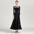 Robe de danse de salon à manches transparentes pour femmes - Robe trapèze à manches longues pour compétitions, événements latins et danses - Noir