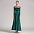 Robe de bal élégante vert émeraude pour femme, ornée d'appliqués de dentelle, épaules dénudées, manches longues, idéale pour la valse, le tango, la rumba moderne et les compétitions.