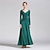 Robe de danse de salon verte pour femme - Robe trapèze à manches longues pour compétitions, danses latines et événements - Jupe fluide