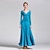Robe de danse de salon bleu sarcelle à manches longues, corsage ajusté élégant pour le latin &danse sociale
