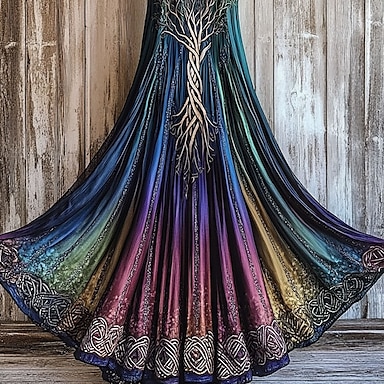Rétro Vintage Médiéval Renaissance Longueur au sol Robe Normal Manches Evasées Viking Étranger Grande Taille Elfe Déguisement Femmes Celtique Royal Halloween Carnaval Mascarade Soirée Adulte Robe