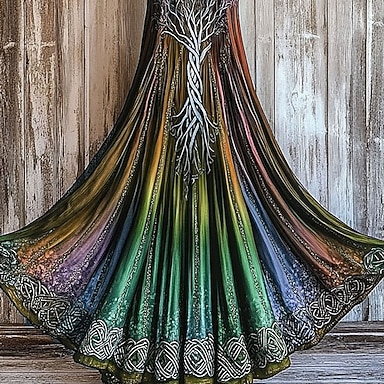 Rétro Vintage Médiéval Renaissance Robe Bal Masqué Normal Viking Elfe Col rond Déguisement Femmes Mascarade Soirée Adulte Robe
