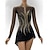 Robe de patinage artistique Femmes Patinage Robe Noir Argent Patchwork Trou de pouce Élastique Entraînement Compétition Tenue de Patinage Classique cristal pailleté manche longue Patinage sur glace