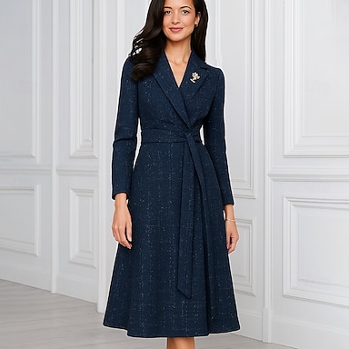 Robe de fête longueur thé A-Line Robe cocktail Robe invité de mariage Robe mère de la mariée Robe à manches longues V col chemise Élégante Vintage Fête Formelle avec Sequins
