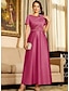 Ligne A Longueur cheville Robe de Soirée Robe de Cocktail Manche Courte Col ras du cou Élégant Minimaliste Formel robe demoiselle d honneur Satin Robe de Mère de Mariée avec Noeud(s) Perlage Couleur