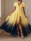 Femmes Robe Longue Maxi Robe Robe de Bal Robe de Soirée Élégant Mode Moderne Soirée Occasion Spéciale Coupe régulière Uni Manche Courte Col en V Jaune Printemps Automne Hiver