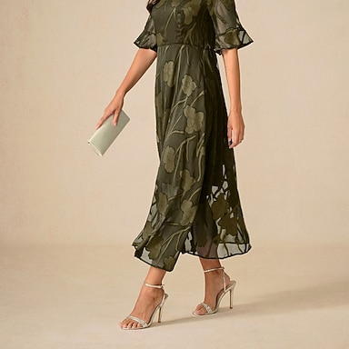 robe de soirée femme manche cape longueur genou élégante verte transparente superposition fête mariage invité printemps été coupe régulière
