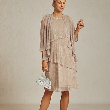 Femmes Robe Midi Robe fourreau Robe Plissée Robe dos nu Élégant Fête Formel Soirée robe demoiselle d honneur Cocktail Perlé Superposé Métallique Coupe régulière Couleur Unie Sans manches Col ras du