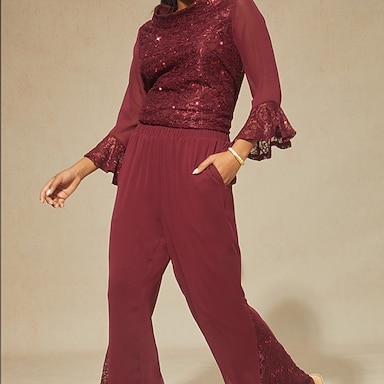 Femmes Chemise en Dentelle Tunique Haut d'épissage en dentelle Chemisier Paillettes Dentelle A Volants Élégant Quotidien Dames Manche 3/4 Manche flottante Col Bateau Col haut Hauts Longs robe
