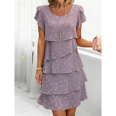 Femmes Robe Longueur Genou Robe Décontractée Robe d'invité de mariage Robe en Chiffon Robe Fleurie Élégant Mode Classique Extérieur Vacances Sortir Coupe régulière Fleuri Manche Courte Col ras du cou