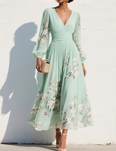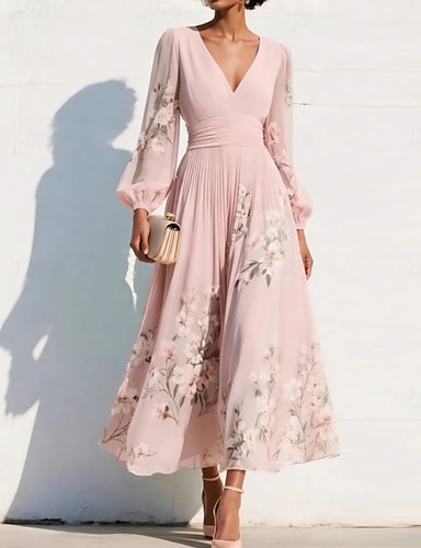 Ligne A Asymétrique Longueur cheville Robes de Cocktail Robe de Soirée Tenue de soirée Élégant ancien Manche Courte Col en V Mariage Formel Nylon avec Imprimé floral Poche