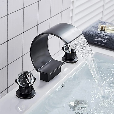 Robinet de lavabo cascade à mélangeurs et trois trous, 20 cm (8 po), à entraxe large.