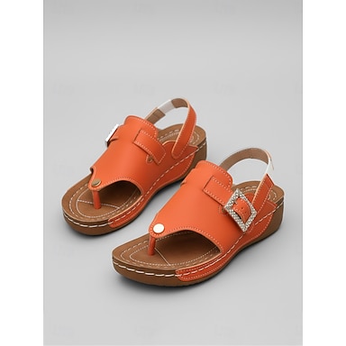 Sandales compensées orange à strass pour femme, avec boucle et bride ajustable, idéales pour l'été, confortables et décontractées, à bout ouvert, parfaites au quotidien et en voyage. &sortie au jardin
