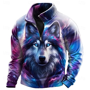 Homme Loup Sweatshirt Sports Mode Occasionnel Fermeture éclair Maison Vêtements de rue Travail Soirée Bleu Vert 2# Vert Automne Toutes saisons Designer S M L XL XXL XXXL