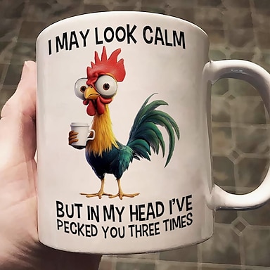 Mug humoristique « J'ai peut-être l'air calme, mais dans ma tête, je t'ai picoré trois fois » - Tasse à café en céramique pour les amoureux des poules - Cadeau humoristique pour le bureau ou la maison