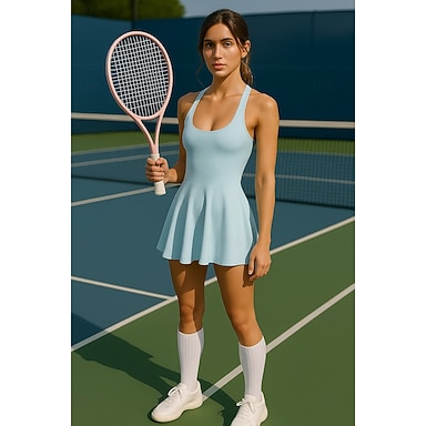 Femmes Couleur Unie Robe de tennis avec short et soutien-gorge intégrés tenue de sport Sans manches Plissé Respirant Tennis Le golf Pickleball Col carré Robe Arrière Coupe Sport Bleu clair Vêtements