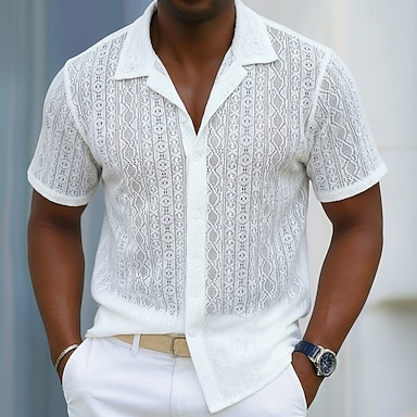 Homme Chemise Chemise d'été Chemise Boutonnée Cardigan Blanche Manche Courte Texturé Mode Revers Occasionnel Tenue quotidienne Trou Vêtement Tenue Moderne Moderne Contemporain Occasionnel