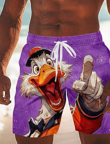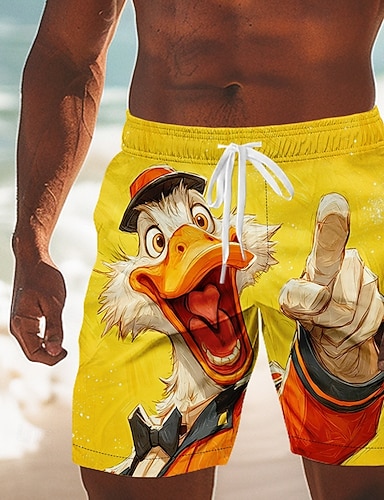 Homme Drôle Canard animaux de dessin animé Maillots de bain Maillots de bain shorts de bain Shorts de Surf Taille Moyenne Hawaïen Vacances à la Plage Poches Latérales doublure en maille Taille