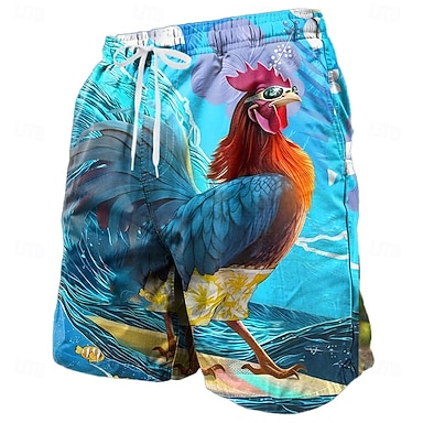Homme Animal Dessin animé Poulets frisés Maillots de bain Shorts de bain Shorts de Surf Taille Moyenne Drôle Extérieur Vacances Poches Latérales doublure en maille Taille élastique avec cordon de