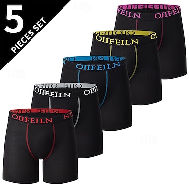 Homme Ensemble de 5 pcs Culottes Basiques Sous-vêtements boxeurs Slips Taille Élastique Tergal Respirabilité Confortable Lettres Plusieurs Couleurs