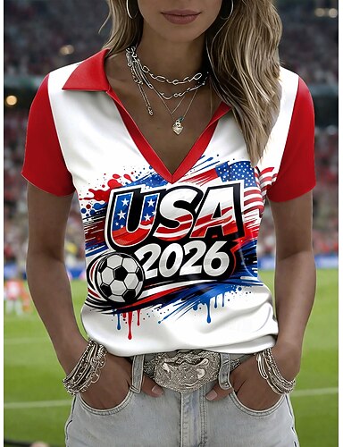 T-shirt patriotique pour femmes du Jour de l'indépendance graphique drapeau vintage élégant classique manches courtes col en V tops réguliers impression quotidienne blanc été printemps