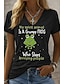 T-shirt femme avec citations humoristiques, style classique et décontracté, manches courtes, col V, coupe classique, idéal pour le quotidien, les sorties et le week-end, noir et blanc, coloris été,