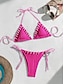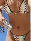 Bikini pour femmes 2 pièces maillot de bain colorblock tanga slim dos nu vacances plage drapeau géométrique col halter sans manches