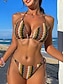 Femmes Maillots de Bain Bikini 2 pièces String Maillot de bain Mince Dos nu Vacances Tenues de plage Couleur Unie Léopard Col Halter Sans manches Maillots de bain