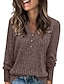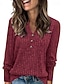 Femmes T-shirt Couleur Unie Élégant Classique Occasionnel manche longue Col en V Hauts Réguliers Quotidien Sortir Week-end Boutons Noir Vert Véronèse Rouge Marron Kaki Printemps Automne