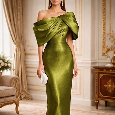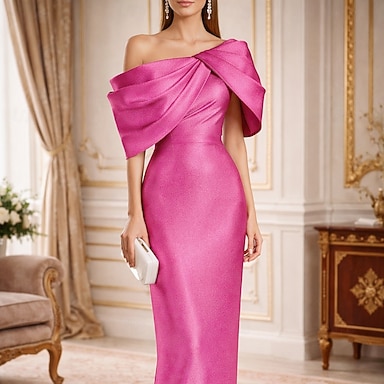 Fourreau Colonne Mi-long Robe de Soirée Robe de Cocktail Robe d'invité de mariage Robe de Mère de Mariée Demi Manches Épaules Dénudées Élégant robe demoiselle d honneur Fête de mariage Taffetas avec