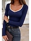 Femmes Tops tricotés côtelés T-shirt Top ajusté Couleurs contrastées Élégant Occasionnel manche longue Manche cloche Col en V Hauts Réguliers Quotidien Sortir Vin bleu marine Abricot Café Printemps