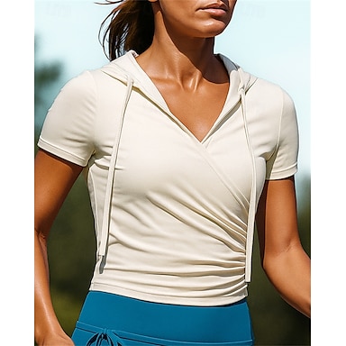 Femmes Chemise de randonnée Haut de randonnée Haut froncé Manche Courte Col en V Top Extérieur Séchage Rapide Léger Évacuation de l'Humidité Respirant Été Printemps Nylon Noir Blanche Rose Tennis Le