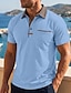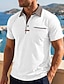 Homme Polo à fermeture éclair Chemise délavée Occasionnel Revers Zip quart Manche Courte ancien Couleur Unie Patchwork Affligé Été Printemps Toutes saisons Coupe régulière Vert Armée Noir Rose Claire