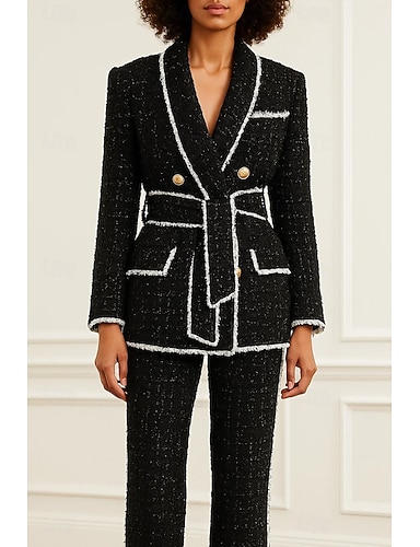 Femmes Blazer Manteau de sport Formel robe demoiselle d honneur Tweed Élégant manche longue Châle Simple Boutonnage