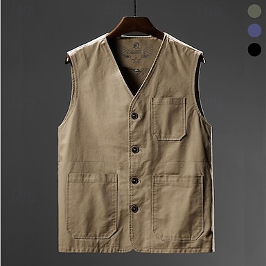 Homme Vest Bomber Veste militaire Formel Maison Coupe-Vent Avec Poches Pur Printemps Automne Couleur Unie Actif Neutre Sans Col Court Noir Bleu Vert Veste