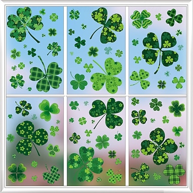 9 feuilles d'autocollants pour vitrines de la Saint-Patrick, trèfles irlandais statiques, autocollants porte-bonheur pour vitrines, maisons et magasins, décorations de Noël