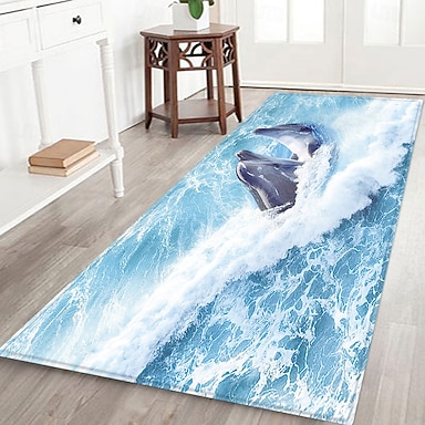 Tapis de couloir bleu marine en flanelle imprimée, tapis d'entrée anti-poussière, coussin de salle de bain doux et absorbant