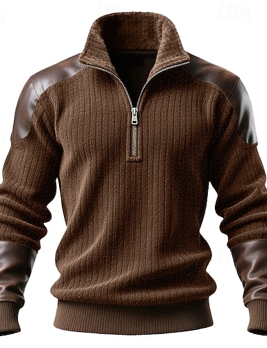 Homme Sweat-shirt Pull Sweat-shirt quart de fermeture éclair Tricot côtelé Marron Col montant Uni Zip Up Patchwork Bloc de Couleur Sport & Loisir Occasionnel Quotidien Streetwear Frais Vêtements de