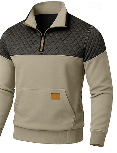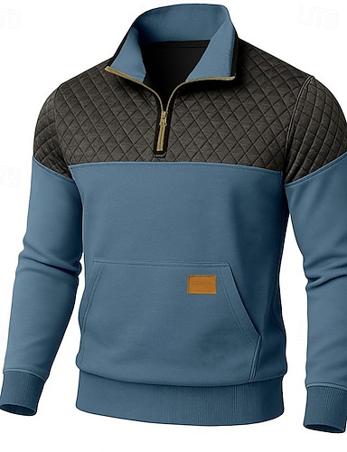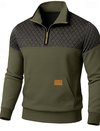 Homme Pull Sweat-shirt quart de fermeture éclair Sweat à capuche tactique Bleu Vert Kaki Café Col montant Demi-zip Uni Patchwork Avec Poches Bloc de Couleur Sport & Loisir Sports Vêtements de rue non