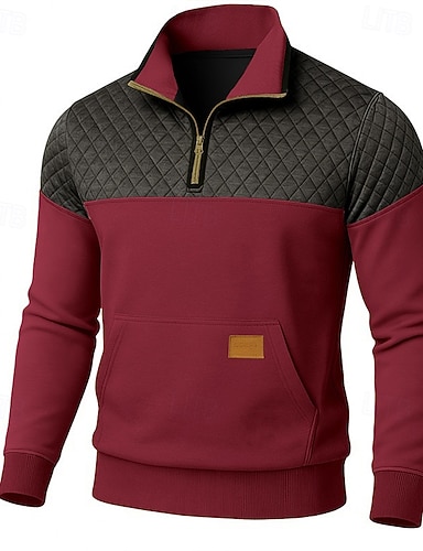 Homme Sweat à capuche Vin bleu marine Vert Kaki Col haut Demi-zip Bloc de Couleur Avec Poches Bloc de Couleur Occasionnel Quotidien ancien Occasionnel Automne Hiver Vêtement Tenue Pulls Capuche Pulls