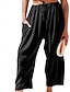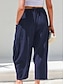 Femmes Pantalon capri Culottes Jambe Large Chinos Shorts d'été Élégant Vacances ancien Longueur complète Taille moyenne Couleur Unie Patchwork Avec Poches Ceinture Élastique Confortable Respirant Non