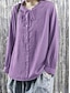 Femmes Chemise Chemisier Faux coton lin Patchwork Boutons Couleur Unie Uni Élégant Basique Occasionnel manche longue Col ras du cou Hauts Réguliers Quotidien Fête Sortir Noir Violet Été Printemps