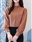 Femmes Chemise Chemisier Hauts en mousseline de soie Patchwork Uni Élégant Basique manche longue Col montant Hauts Réguliers Quotidien Extérieur Fête Noir Vin Vert Véronèse Kaki Été Printemps