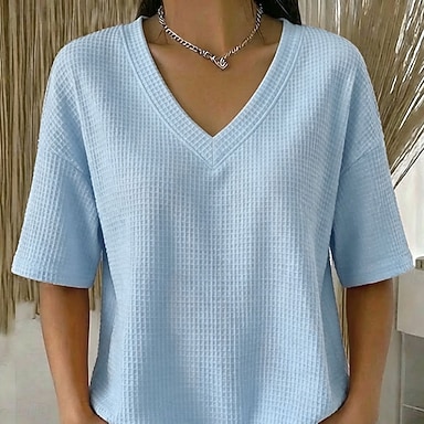 Femmes T-shirt Maille Graphique Élégant Sexy Classique Manche Courte Col en V Hauts Réguliers Occasionnel Quotidien Plage Bleu Blanche Rose Claire Bleu Roi Gris Été Printemps