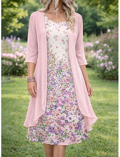 Femmes Robe Ensemble Robe trapèze Élégant Vacances Fleuri Graphique Superposé Imprimé Mini Robe Demi Manches Col ras du cou Quotidien Bleu Rose Claire Orange Été Printemps Coupe Ample