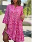 Femme Mini robe Robe Cachemire Robe casual Robes bohème chic robe boheme Bohême Ethnique Trapèze Vacances Plein Air Ample Floral Cachemire Manches 3/4 Col V Fuchsia Eté