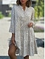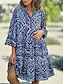 Robe chemisier mini femme Robe de couverture Vêtements de plage Robe mini Poche Imprimé Mode Décontractée Poisson Col rabattu Manches 3/4 Coupe loose Extérieur Quotidien Blanc Bleu Été Printemps 2023