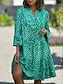 Femmes Mini Robe Robe fourreau Vacances Occasionnel Extérieur Sortir Coupe Ample Fleuri Manche 3/4 Col en V Noir Fuchsia Vert Bleu de minuit Été Printemps