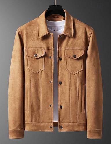 Homme Veste en faux suède Blazer en faux suède Tenue d'Affaire Fête d'Entreprise Mode Occasionnel Automne / Hiver Faux suède Uni Avec Poches Boutons Confortable Simple Boutonnage veste Marron Kaki