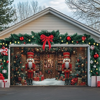 Décorations de porte de garage de Noël pour 2 voitures, grand décor de porte de garage avec des soldats Casse-Noisette, style rustique vintage, pour la maison, le mur, la terrasse ou le jardin (2,13 m x 2,44 m).